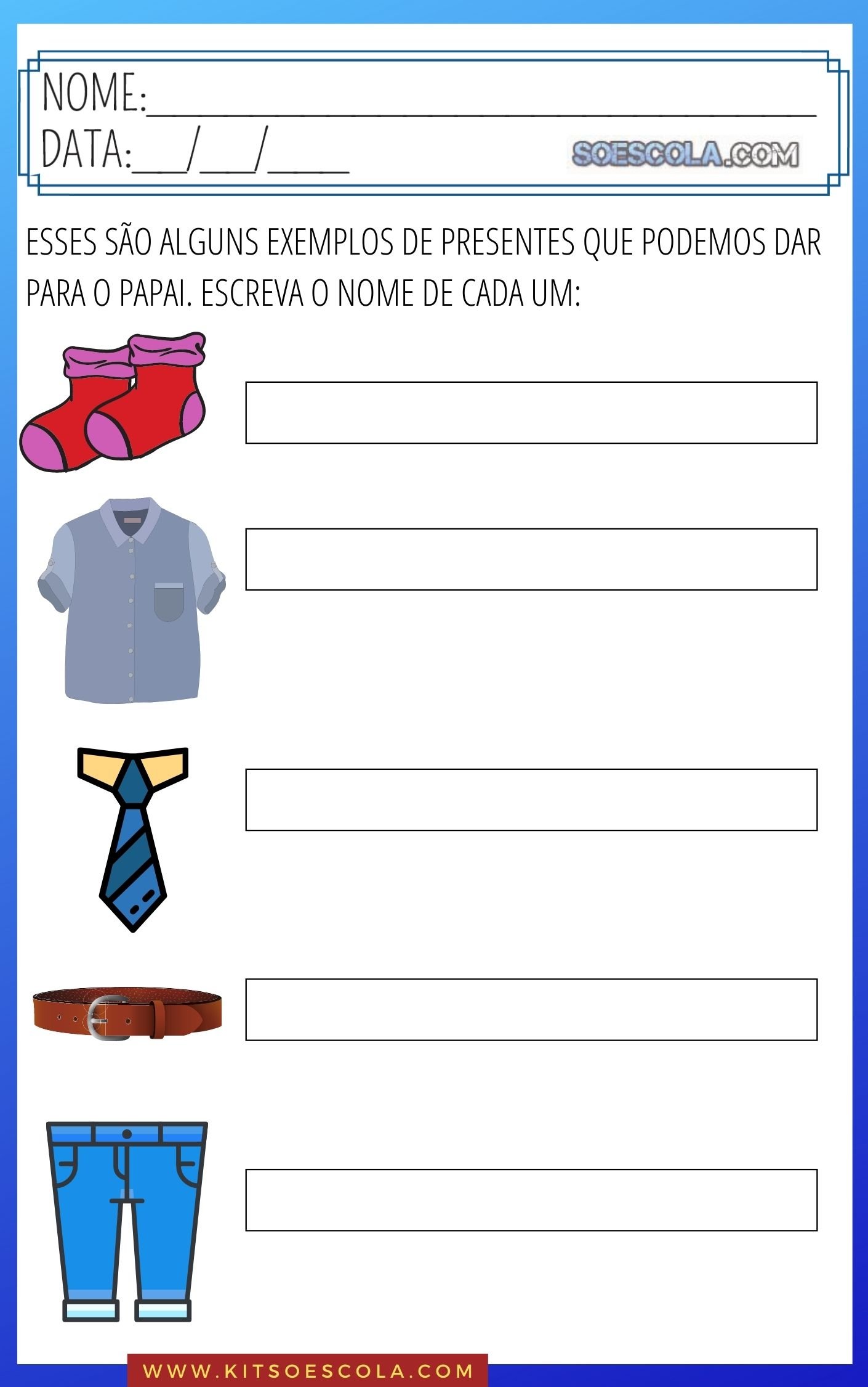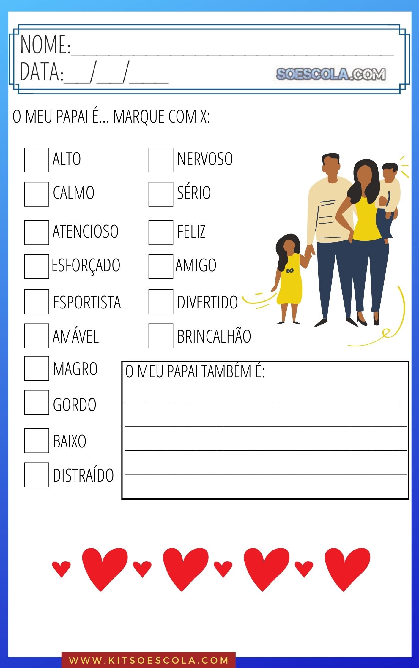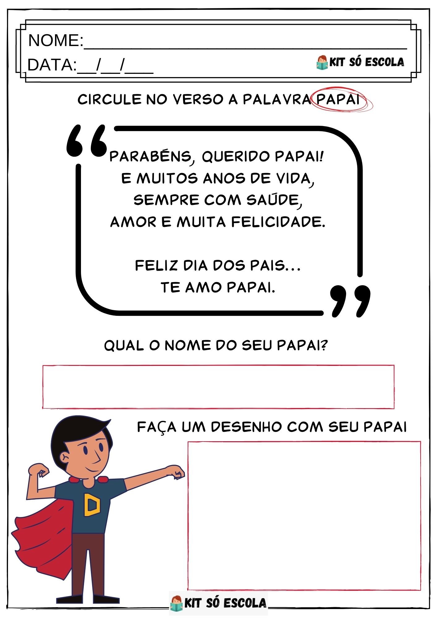 - Escreva uma redação sobre seu papai;